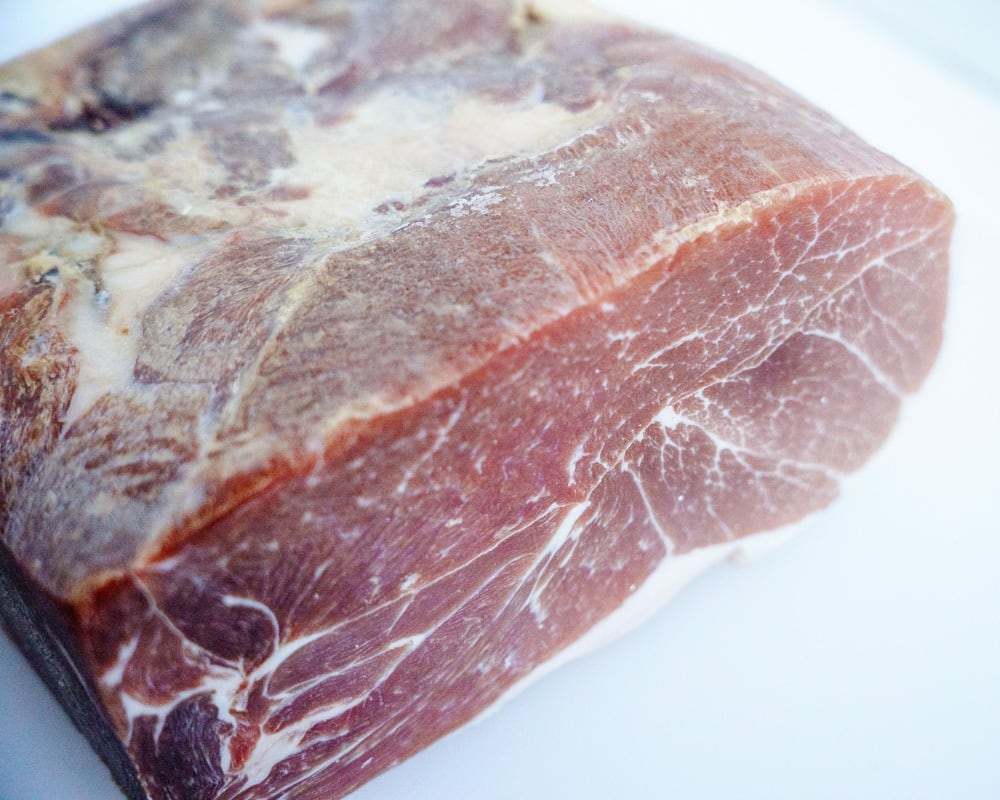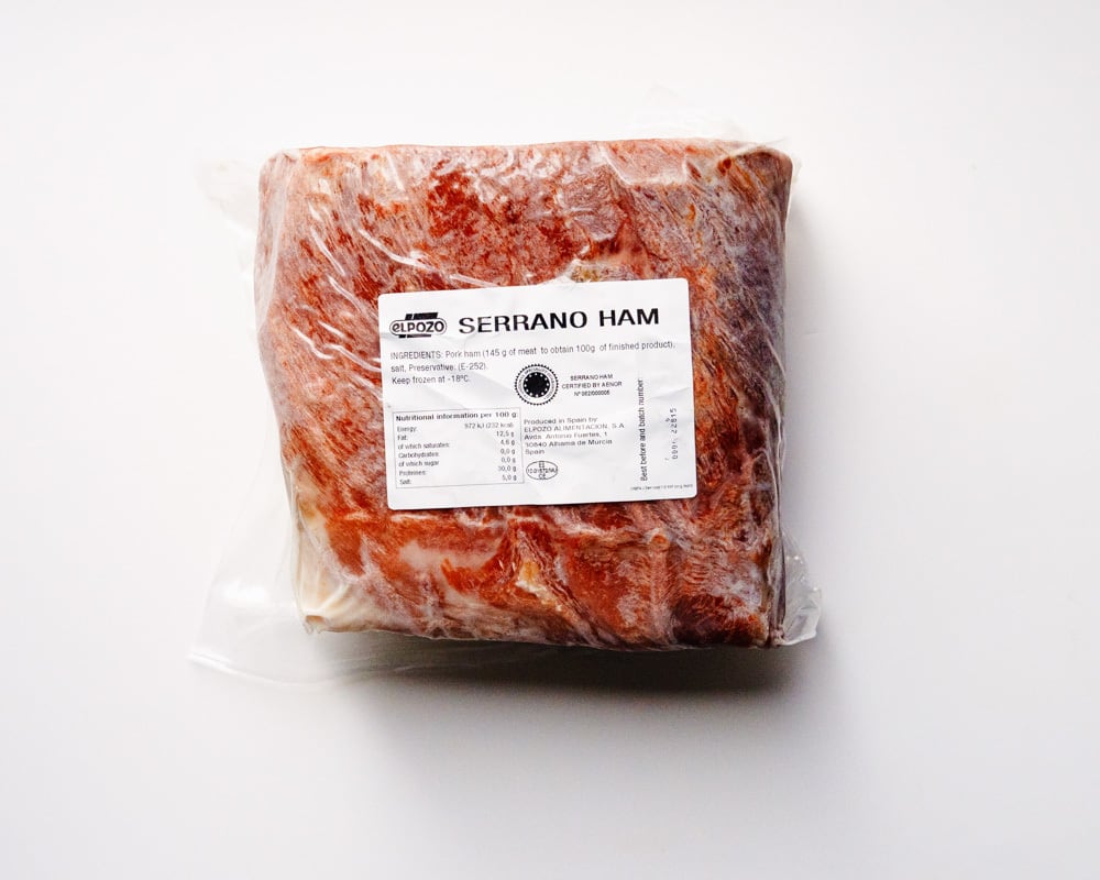 □ 原材料 - 豚もも肉(スペイン産)、食塩/発色剤(硝酸K)、(一部に豚肉を含む)