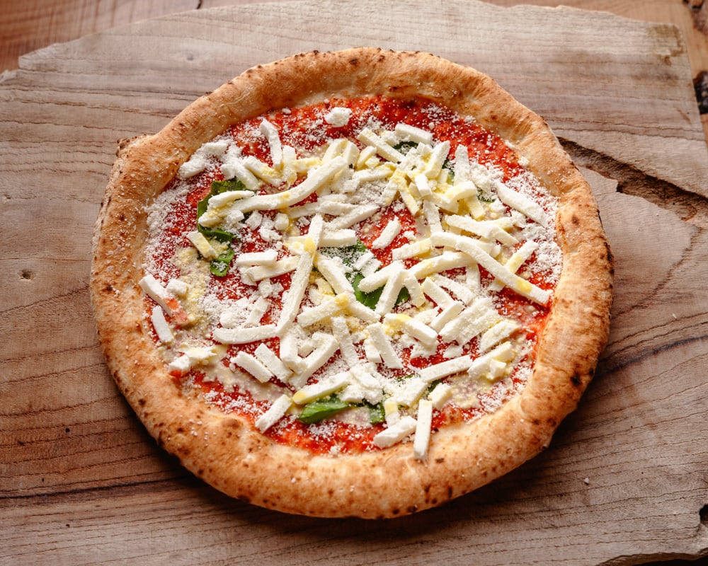 ナポリのピッツァ職人と同じように生地は低温長時間発酵、約1日かけてじっくり発酵させています。 これによりもっちりとした食感と小麦本来の香りを感じる仕上がりです。