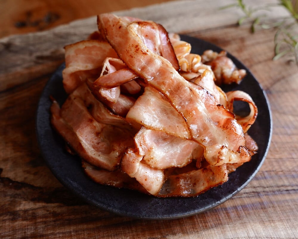 多くのお客様にご好評いただいている特製ベーコンのお得用端っこ&切り落とし1kgパックを数量限定でご用意しました。