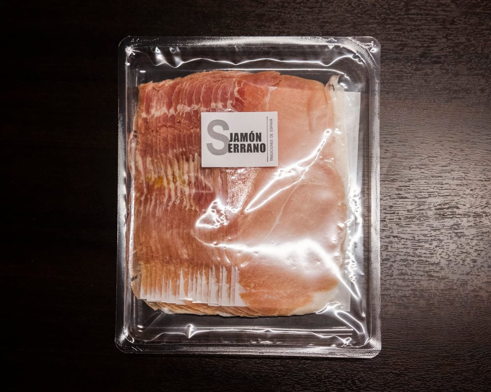 本場スペインにおいて、実際に多くのバルやレストランで長年愛用されている9ヶ月熟成のハモンセラーノです。薄めのスライスで柔らかく、マイルドな風味を最大限に活かした口当たりとなっております。用途は様々でそのままお酒のおともに!ピザやパスタにお使いの場合焼き上げ、茹で上げ後の余熱で!サラダのトッピングやパンにはさんでも美味しくお召し上がりいただけます。一枚ごとにシートが敷いてあるためはがしやすく、美しく盛り付けることができます。